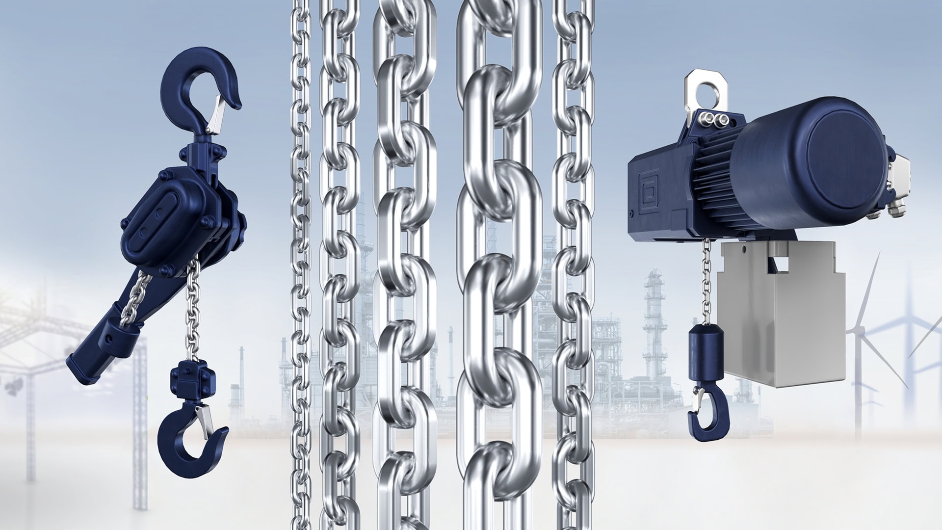 Click here to read more about our case-hardened chains for motor-driven hoists.