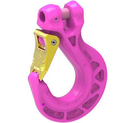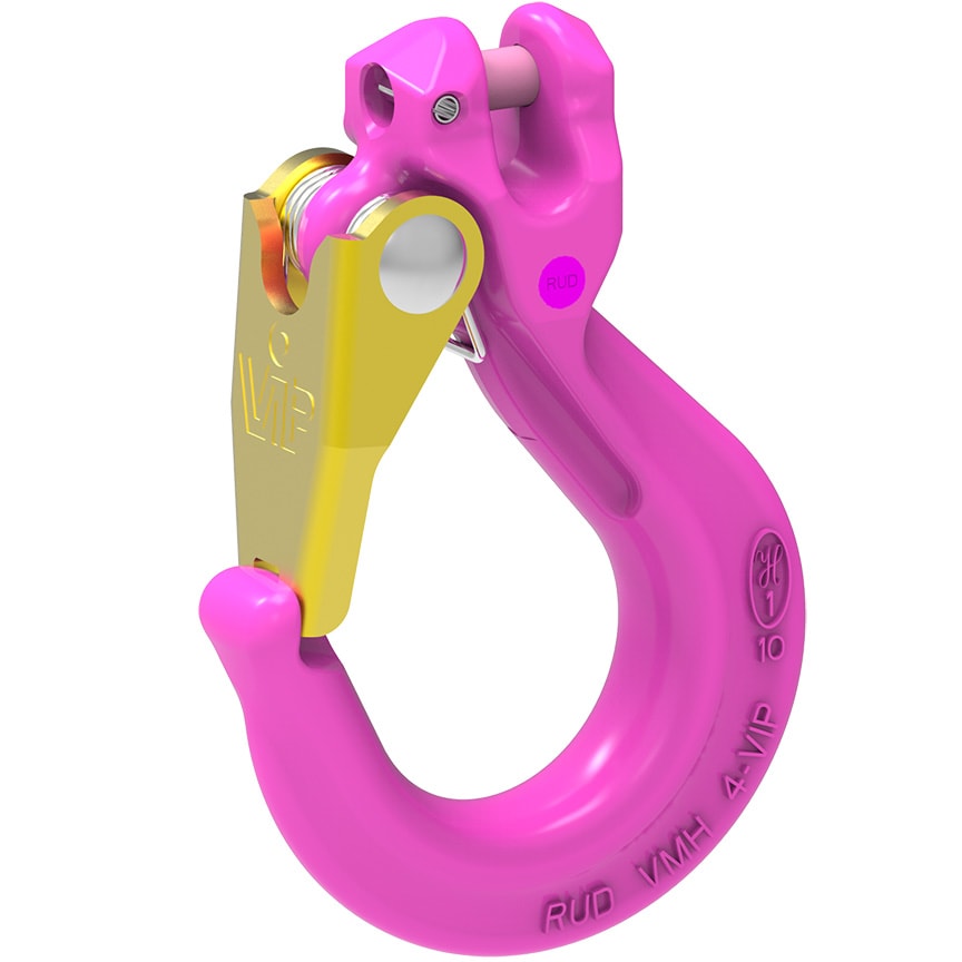 - The forged safety latch engages in the tip of the hook and is thus protected against lateral bending